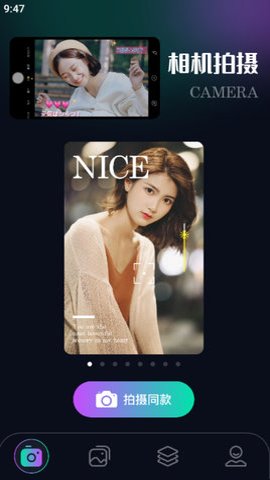 3、它不仅拥有高清相机拍摄功能和专业的图片编辑处理功能,还提供了海量的拍摄素材模板。