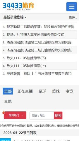 34433体育网是一款体育app应用,提供丰富多样的体育资讯和直播内容。无论是喜欢足球、篮球还是其他体育项目,用户都可以在这个平台上找到自己感兴趣的比赛直播录像。这款app还有很多知名主播为观众提供直播结束解说,让观众更好地理解比赛。