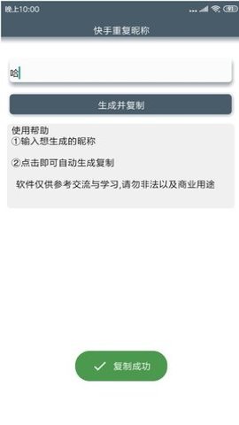 1、 需要注意的是,快手重复名生成器仅限于学习和娱乐使用,用户不应将其用于其他用途。
