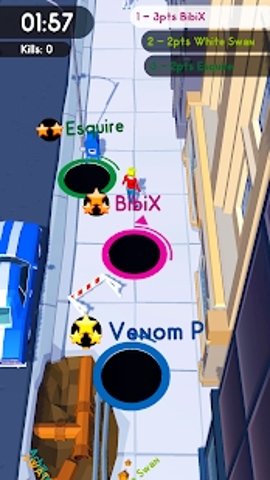 3、如果被比自己大的黑洞追,可以利用刷新的车和高楼来减速,逃之夭夭。