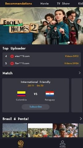 1、首页有一个VOD和配置文件部分,用户可以快速找到自己想观看的流媒体内容。
