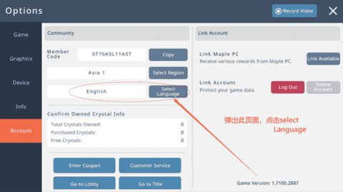 1、在弹出的设置页面中,可以选择将游戏语言设置为中文,并提示重启游戏以使设置生效。