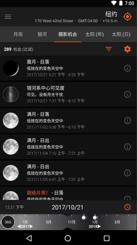3、用户还可以利用该应用安排黄金时段、蓝色时段、日出、日落、月出、月落的活动,并发送屏幕截图和详细信息。