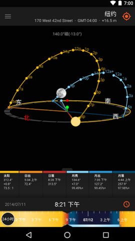 3、 该应用还提供了时光机滑块功能,用户可以调整和,查看任意时刻的天文现象。