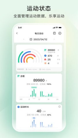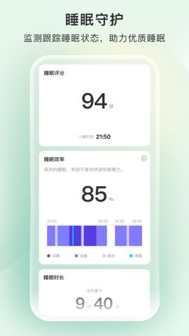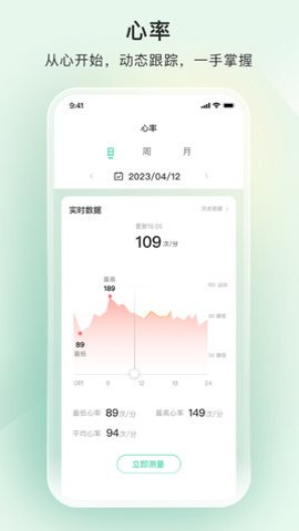 1、它提供了健康数据展示功能,用户可以查看自己的心率、睡眠等身体数据,并支持日、月、年的查看。