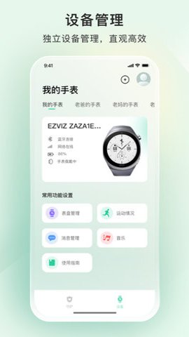 2、 萤石健康APP提供设备管理功能,方便用户管理手表等穿戴设备。