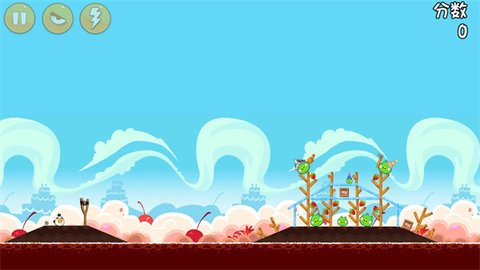 3、 红色小鸟(红火)体型小、重量轻,攻击力弱,没有特效,但可以在滚动时消灭绿猪。