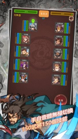 2、有众多三国角色,每个角色都有独特的技能和特点,玩家可以根据自己的喜好组建强大的队伍。