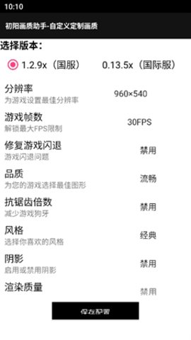 3、 自定义设置:子阳画质助手App提供了性能、平衡、质量和自定义模式等多种设置选项,以适应不同玩家的个性化选择和需求。