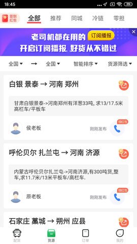 3、每个司机可以根据自己的路线,在平台上找到与自身路线匹配的货源。