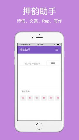 3、 只需要输入一个字,押韵精灵就可以帮助用户查询到与之押韵的单字、多押词、流行热词、唐诗、宋词、元曲、歌词以及英语单词。