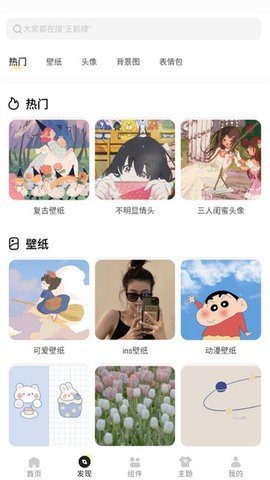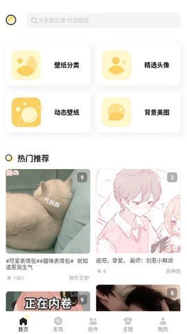 4、奶油桌面还提供了壁纸、头像、主题等不同素材,不论是风格的需求,用户都能在这里找到相关的推荐。