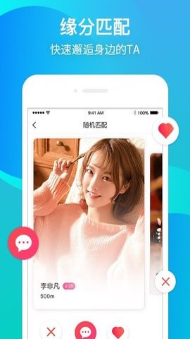 3、只需一秒钟,用户就能与附近的女神约会,缘分将带你邂逅心动的那个TA。