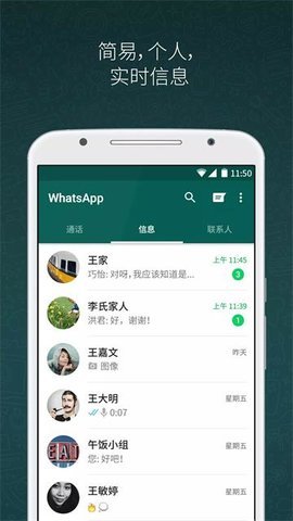 1、 在成功注册之后,我们可以开始使用WhatsApp进行聊天和添加好友。