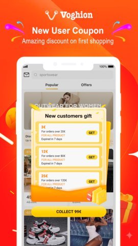 2、 Voghion是一款非常方便且丰富的跨境电商购物应用。