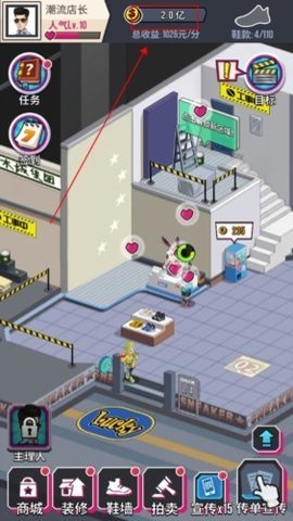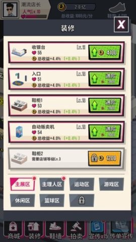 2、解锁潮流装备,提升店铺等级,扩张店面,赚取更多的钱。