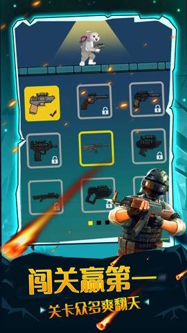 1、这款游戏的画风采用2dq版卡通的行程的设计,更加凸显这款游戏的主题是以射击为目的来挑战的,可以随意挑选,在不同的场景中会出现不同数量的对手,然后你可以用自己的武器,更多有趣的玩法等你来尝试。