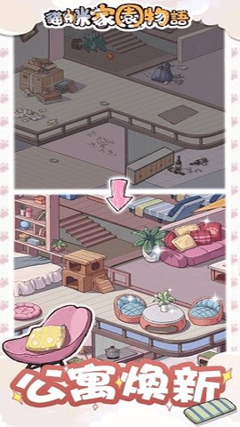 1、 你将拥有一个猫咪庭院,可以自由地打造独特风格的猫咪家园。