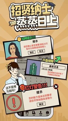 3、独特的文字卡通画风,游戏的内容十分丰富,赚取更多的金钱并不断发展企业规模。