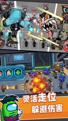 4、玩家将扮演弱小的摄像头人,面对无数的马桶怪人和太空恐怖人的包围。