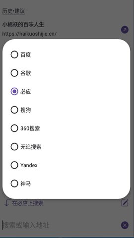 1、在使用Xiu浏览器搜索时,用户可以自由选择百度、谷歌、必应、搜狗等多个引擎,保证能够找到自己想要的资源。