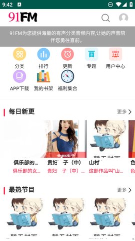 2、 除了以上的功能,91FM听书还具备全面的互动体系。