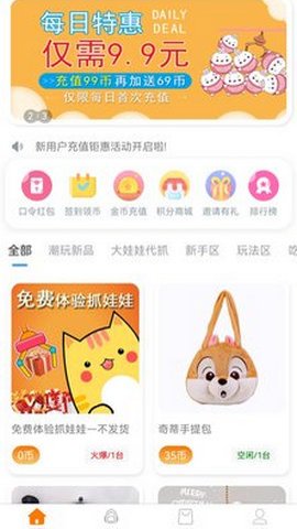3、玩家可以通过积分兑换的方式免费获取心仪的娃娃,也可以进行安全的充值购买。
