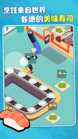 1、玩家可以制作各种美味的寿司出售,采用最新的可爱绘画风格设计,制作世界各地美味的寿司。