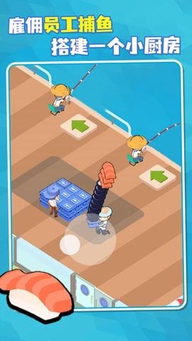 3、海上寿司店,捕捉新鲜的海鱼,体验趣味的休闲经营玩法,成为一个出色的老板,让大量的顾客能够吃到自己制作的美味食物。