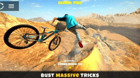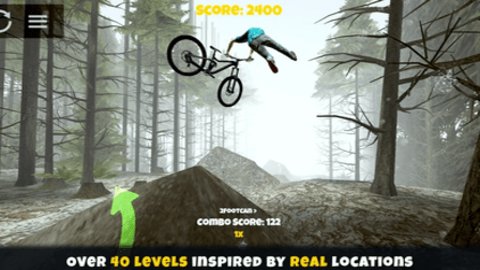 3、玩家将置身于逼真的3D场景中,操控一辆没有刹车的炫酷山地车在复杂的山地上骑行,并完成各种高难度的动作。