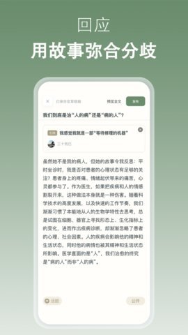 2、它提供了一个与他人、不同、观点和自我的深刻连接,让用户能够分享和阅读真实的医学人文故事,感受医患生态的多样性。