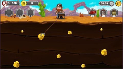2、游戏的玩法非常经典:玩家需要校准角度,看准时机抛出抓钩,迅速拉回抓住的金子等物品。