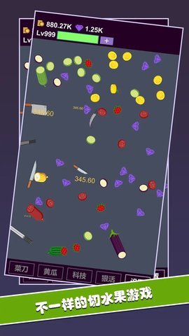 3、玩家可以选择不同种类的刀,并不断升级刀,才能切开更多的食物来获得更多的金币和钻石。