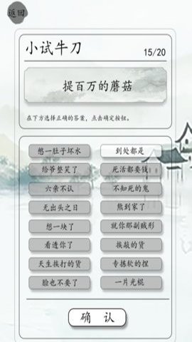 1、玩家需要根据给出的上半句,在众多答案中选择下半句,挑战自己的歇后语储备和语言联想能力。