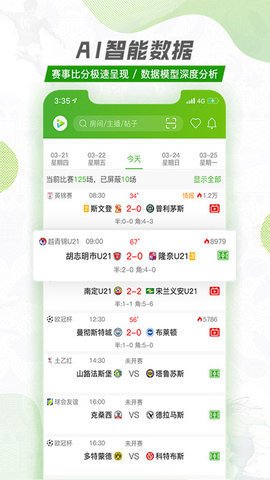 2、全球各类赛事比分直播也是探球网的一大特色,用户可以观看五大联赛、欧洲杯、美洲杯等全球赛事的比分直播。
