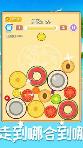 2、可以将暂时不用的水果摆放在一个角落,或者利用大球将边上的小球砸进去。