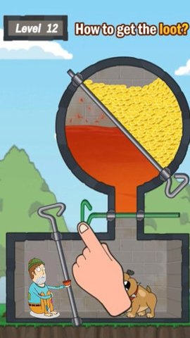 2、玩家只需要通过拉动画面上的拉环,解救被困的人物并让他获得足够的金钱,才能算是真正过关。