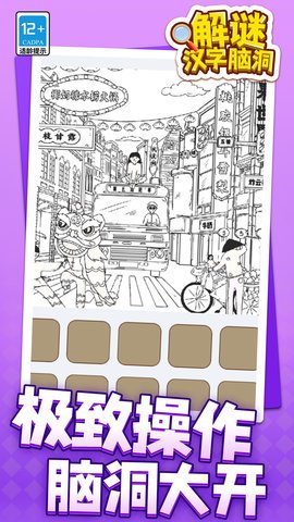 1、解谜汉字脑洞是一款简单而有趣的汉字益智游戏,其中包含了各种充满想象力的关卡,让玩家们可以尽情挑战。