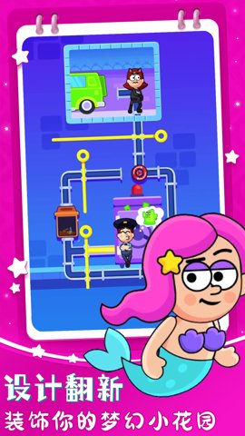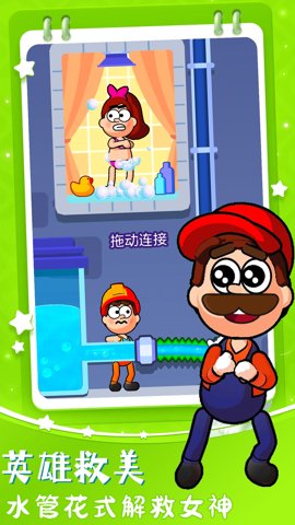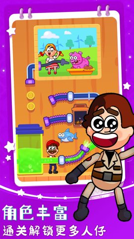 2、同时游戏中有多重关卡和丰富的角色,玩家可以通过水管连接花式营救,通关解锁更多物品,故事精彩有趣。