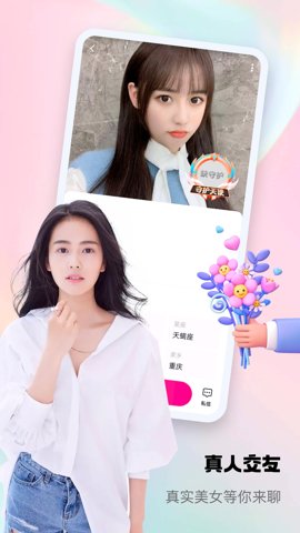 2、它通过真人聊天的方式,让用户随时随地在线交友,认识更多有趣的小伙伴,告别孤单。