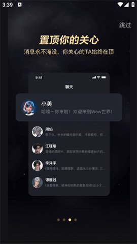 美团Wow是一款社交软件应用,它的特点是能够置顶你关心的人,确保你关注的消息不会被淹没。无论何时何地,你关心的TA始终在顶部显示。这款软件内置了丰富的话题库和语义理解技术,能够为用户提供有深度、有趣的对话体验。