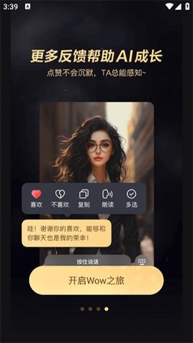3、用户的反馈对于AI的成长至关重要,点赞不会被忽视,AI助手总能感知并与用户进行实时聊天。