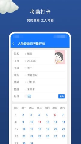 2、工地管理人员可以实时监控工地进出人员,自动记录考勤信息,方便随时查阅。