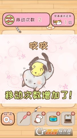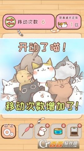 3、游戏的玩法类似于经典的华容道,玩家需要在有限的步数内将阻碍猫咪的其他猫咪挪开。