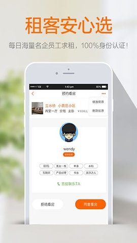 2、对于租客来说,火炬租房提供了多种选择,每天都有大量的租客求租信息,100%经过身份验证的名企员工也在其中。