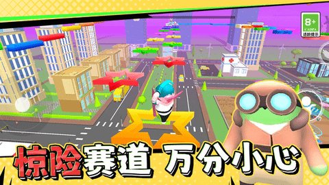 1、你需要控制你的可爱宠物旋转,跳过各种障碍物,率先到达终点线才能获胜。