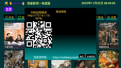 3、恒星影视抹蓝版是内置了影视源接口的版本,因此我们只需要在点击线路后面的【确定】即可开始获取资源,不需要自己输入接口地址。