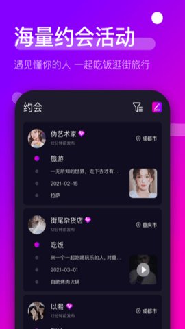 4、时倾交友还提供了发布各种主题的约会邀请功能。