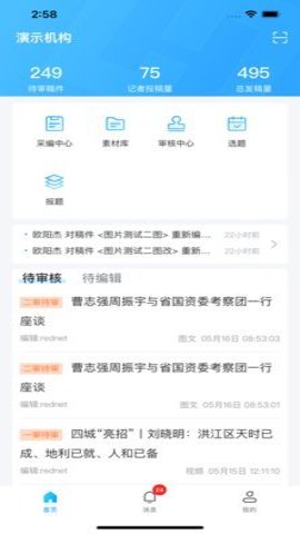2、用户可以随时随地打开手机进行即时审核,并即时发布稿件。