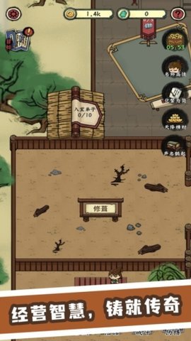 3、除了拳法的训练,模拟经营类游戏还包括心法的训练,玩家可以修建打坐点,让角色和弟子开始练习。